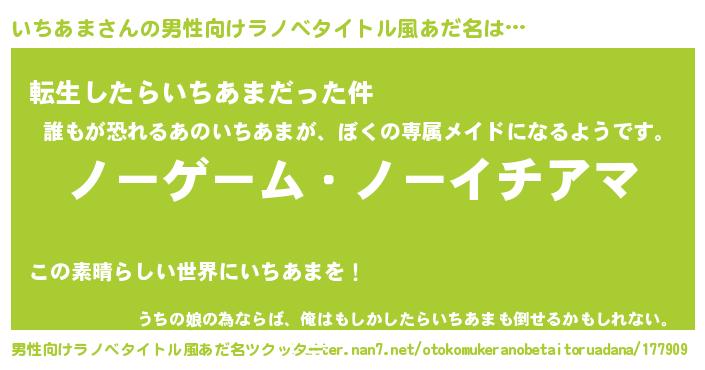 | 女子向けラノベタイトル風あだ名 | 『死神いちあまの再婚』 |