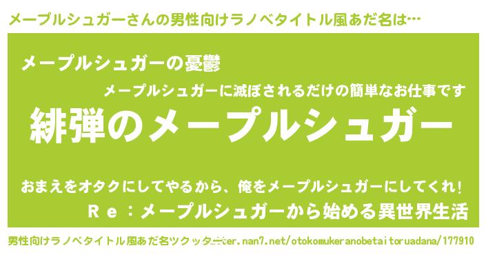 メープルシュガーさんの男性向けラノベタイトル風あだ名をツクッター!