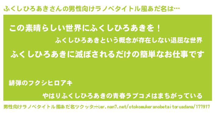 | 胡散臭い通販商品みたいなあだ名 | 『あなたにだけ特別に提供する世界で10本だけ現存している希少なブランデー…その名も「ふくしひろあき」』 |