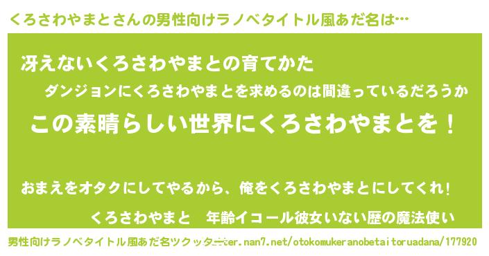 | 女子向けラノベタイトル風あだ名 | 『悪役くろさわやまとに転生したようですが、知った事ではありません』 |