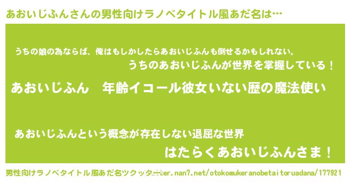 | 女子向けラノベタイトル風あだ名 | 『あおいじふんの玉の輿計画!』 |