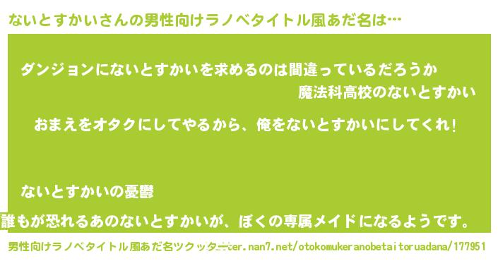 | 女子向けラノベタイトル風あだ名 | 『ないとすかい夫妻のなれそめ』 |