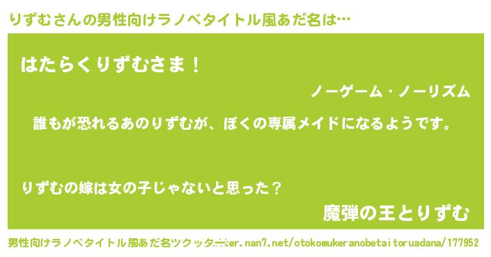 | ヘコむあだ名 | 『りずむ(苦笑)』『りずっ子』 |