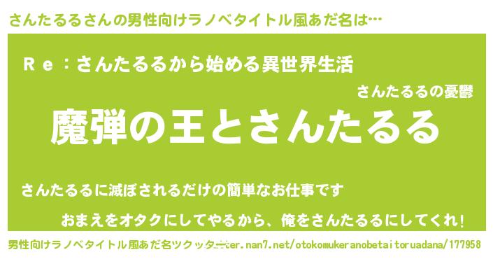 | ヒーロー風カッコイイあだ名 | 『仮面サンダー』『究極戦士サンタルル』 |