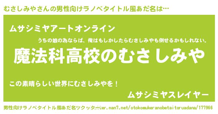 | 女子向けラノベタイトル風あだ名 | 『むさしみやアンティーク』 |