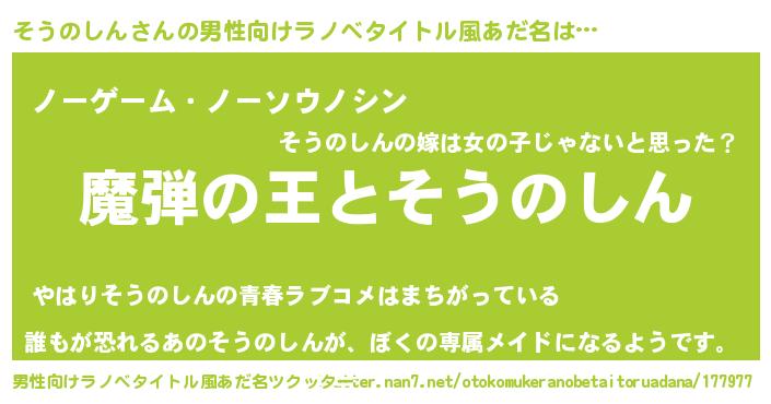 | 女子向けラノベタイトル風あだ名 | 『そうのしんが死なない童話 林檎のそうのしんの診療簿』 |