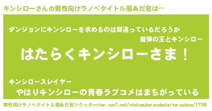| ポケモン風あだ名 | 『キンゴンZ』『ヒキンシロー』 |