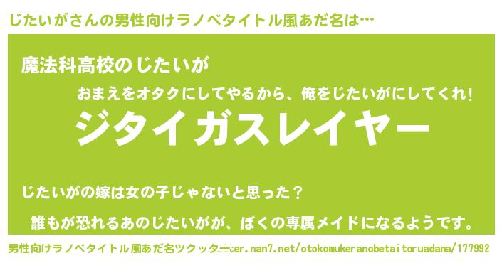 | 肩書あだ名 | 『じたいが少将』『じたいが閣下』 |