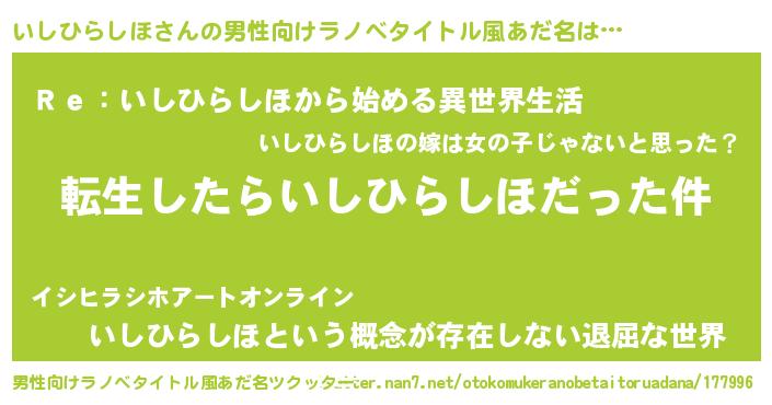 | 伝説のあだ名 | 『古より伝わる吟遊詩人いしひらしほ』 |