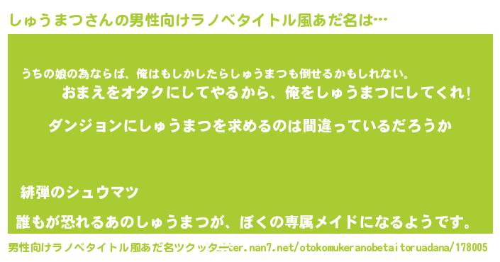 しゅうまつさんの男性向けラノベタイトル風あだ名をツクッター!