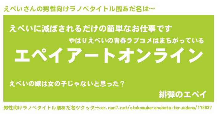 | 女子向けラノベタイトル風あだ名 | 『誰かこのえぺいを説明してください! ~契約から始まるウェディング~』 |
