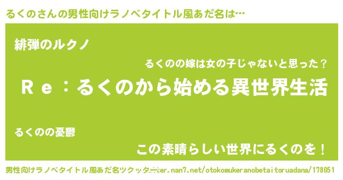 | 意味不明あだ名 | 『自称るくの』『住所不定無職るくの(1歳)』 |
