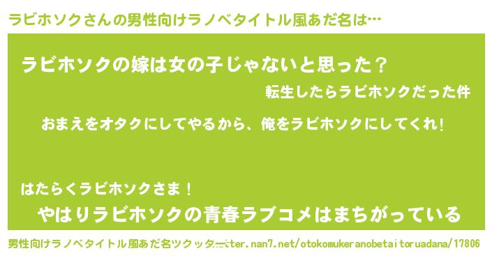 | 女子向けラノベタイトル風あだ名 | 『ラビホソク夫妻のなれそめ』 |