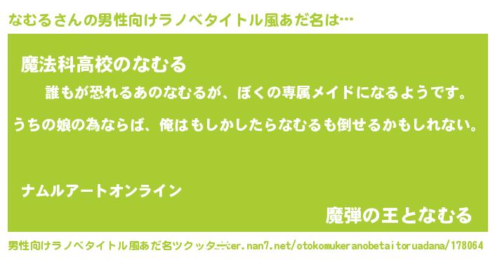 | 意味不明あだ名 | 『なむるフォーエバー』『自称なむる』 |