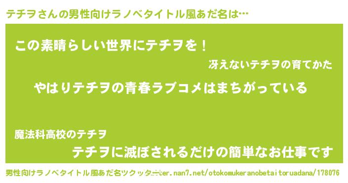 | ヒーロー風カッコイイあだ名 | 『ウルトラテチヲマン』『仮面テチダー』 |