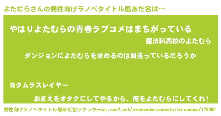 | 女子向けラノベタイトル風あだ名 | 『よたむらは平凡を望む』 |