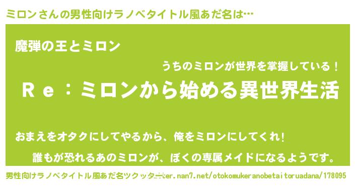 | 女子向けラノベタイトル風あだ名 | 『闇のミロン』『ミロンの契約王妃』 |