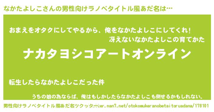 | 胡散臭い通販商品みたいなあだ名 | 『億万長者になれるブレスレット…その名も「なかたよしこ」』 |