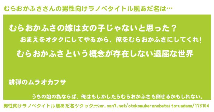 | 意味不明あだ名 | 『永久保存むらおかふさ』 |