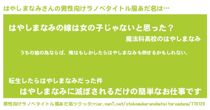 | ファンタジー風あだ名 | 『エターナルハヤシマナミー』 |