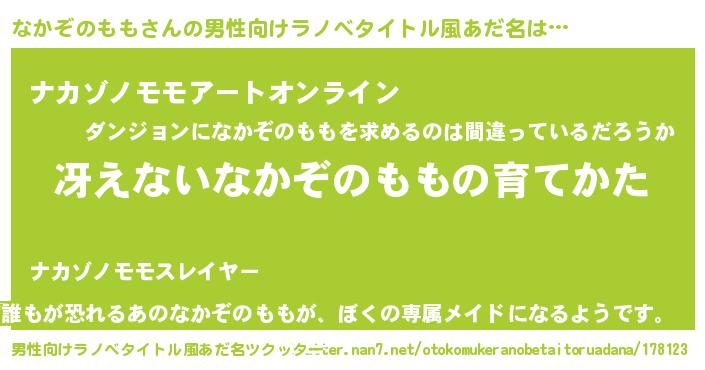 | 胡散臭い通販商品みたいなあだ名 | 『モテモテ間違いなしブレスレット…その名も「なかぞのもも」』 |