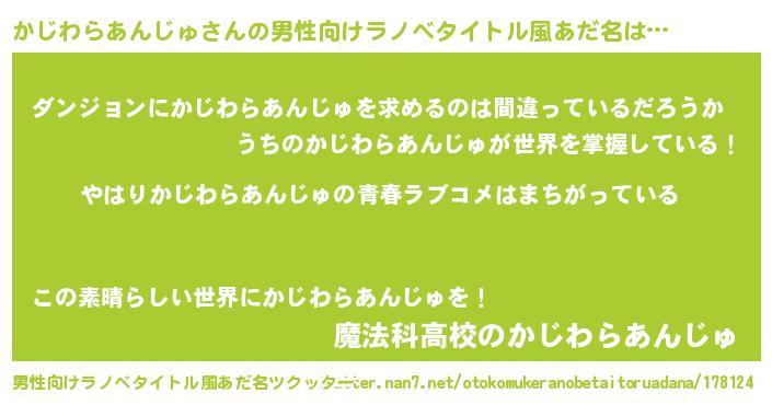 | 女子向けラノベタイトル風あだ名 | 『かじわらあんじゅの雑貨屋さん』 |