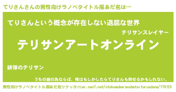 | ヘコむあだ名 | 『てりにゅー』『てりさん(小並感)』 |