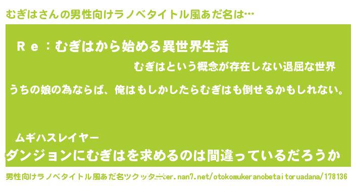 | 胡散臭い通販商品みたいなあだ名 | 『運命の人と巡り会える高級そうな絵画…その名も「むぎは」』 |