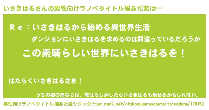 | 意味不明あだ名 | 『住所不定無職いさきはる(79歳)』 |