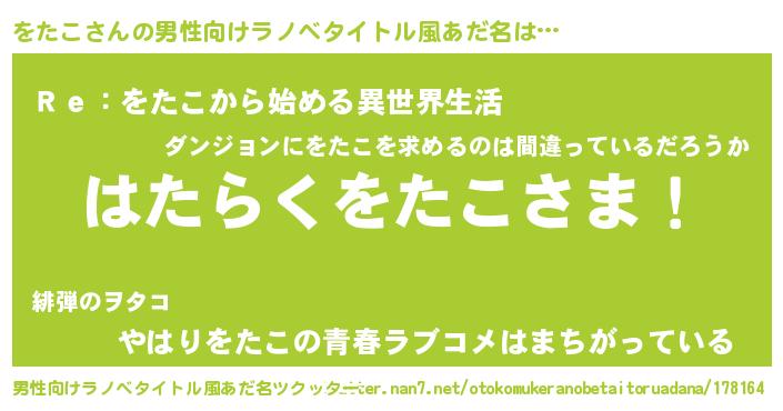 | 意味不明あだ名 | 『自称をたこ』『をたこフォーエバー』 |