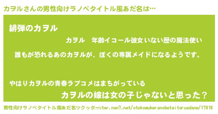 | 女子向けラノベタイトル風あだ名 | 『カヲルの契約王妃』 |