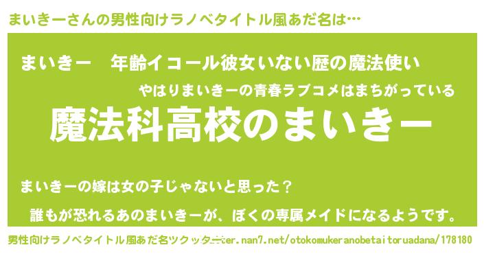 | 女子向けラノベタイトル風あだ名 | 『まいきーなんてお断りですっ。』 |