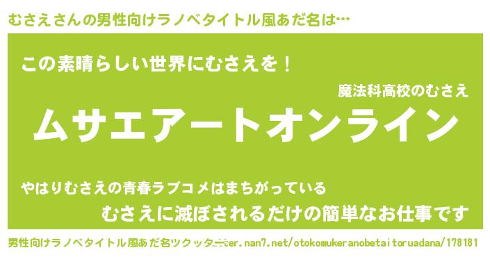 | 胡散臭い通販商品みたいなあだ名 | 『億万長者になれる霊験あらたかなお札…その名も「むさえ」』 |