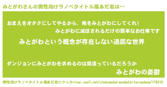 | 意味不明あだ名 | 『永久保存みとがわ』『ペロリンみとがわ』 |