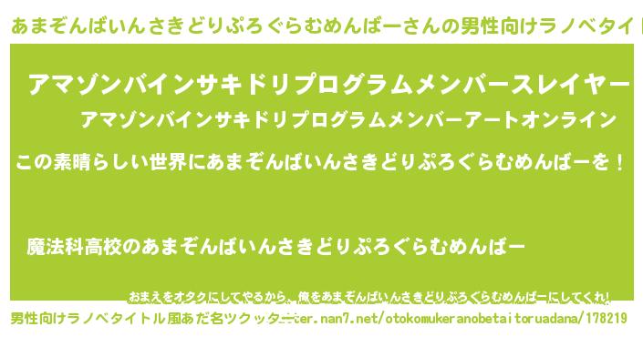 | 萌えアニメ | 物語のオチ『あまぞんばいんさきどりぷろぐらむめんばーさんがボートに乗っていなくなる』 |