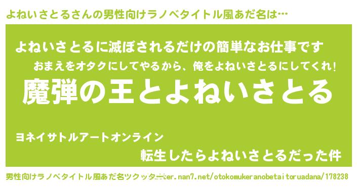 | 意味不明あだ名 | 『住所不定無職よねいさとる(79歳)』 |