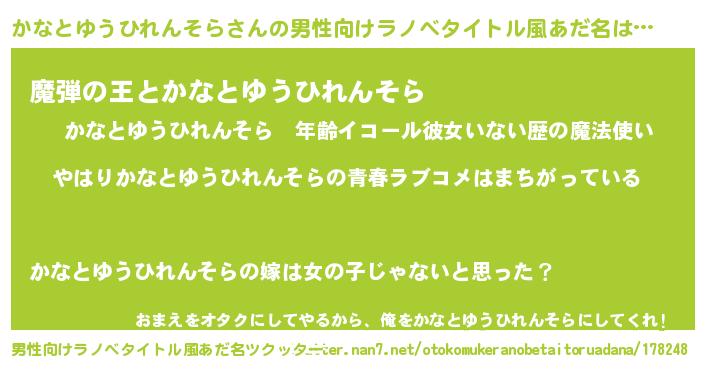 | 女子向けラノベタイトル風あだ名 | 『かなとゆうひれんそら伯爵の花嫁』 |