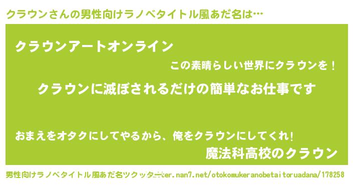 クラウンさんの男性向けラノベタイトル風あだ名をツクッター!