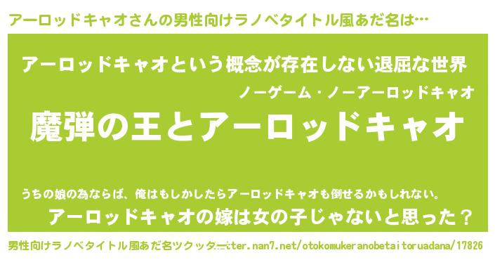 | 意味不明あだ名 | 『住所不定無職アーロッドキャオ(47歳)』 |