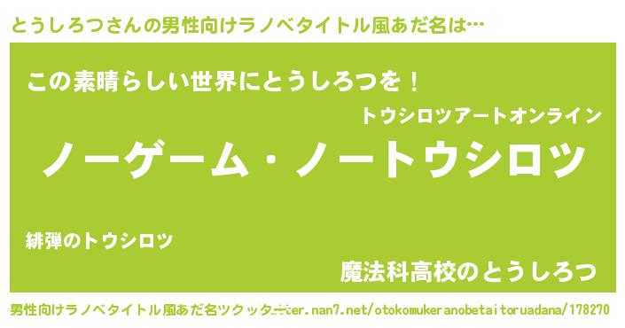 とうしろつさんの男性向けラノベタイトル風あだ名をツクッター!