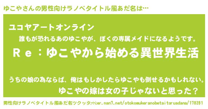 | 女子向けラノベタイトル風あだ名 | 『ゆこやストレイドッグス』 |