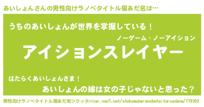 | ヒーロー風カッコイイあだ名 | 『暗黒騎士アイ』『慈愛の使者あいしょん』 |