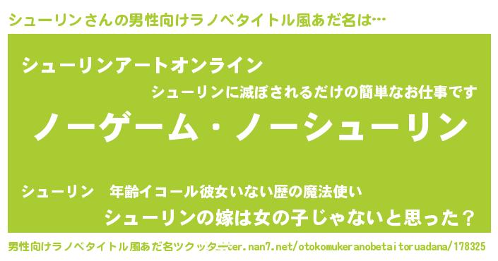 | ヒーロー風カッコイイあだ名 | 『愛の使者シューリン』『幻影騎士シュ』 |