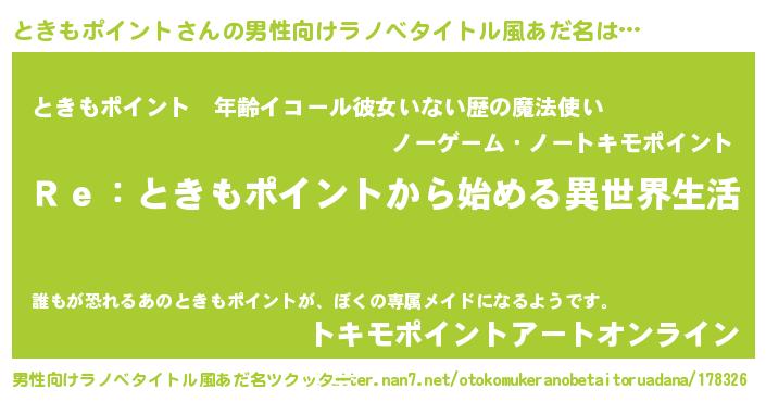 | 意味不明あだ名 | 『自称ときもポイント』 |