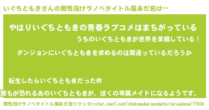 | 女子向けラノベタイトル風あだ名 | 『いぐちともきは平凡を望む』 |