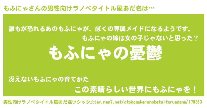 | 胡散臭い通販商品みたいなあだ名 | 『必ず成功するブレスレット…その名も「もふにゃ」』 |