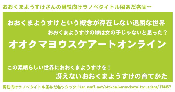 | ヒーロー風カッコイイあだ名 | 『スーパーオオクマヨウスケ』 |
