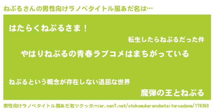 | 女子向けラノベタイトル風あだ名 | 『ねぷるの雑貨屋さん』 |