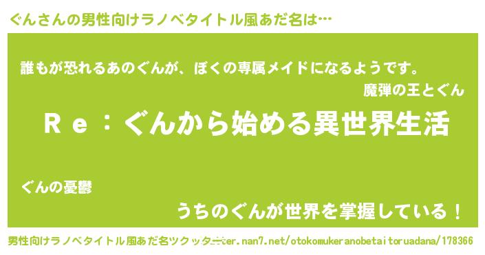 | 女子向けラノベタイトル風あだ名 | 『闇のぐん』『ぐんの契約王妃』 |