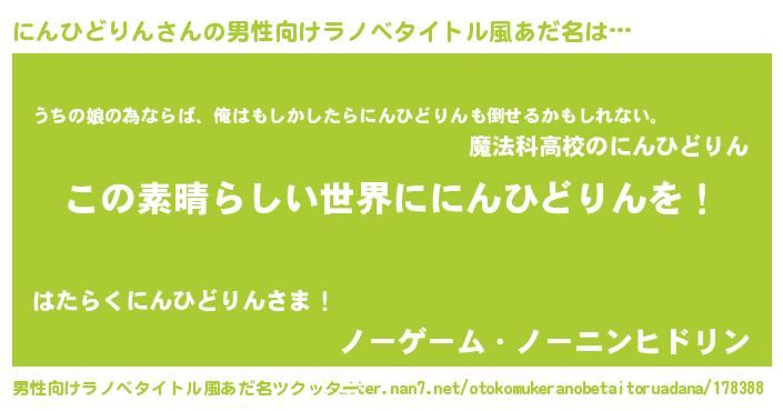 | 意味不明あだ名 | 『住所不定無職にんひどりん(77歳)』 |